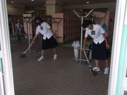 昨日も1年と2年の女子生徒が掃除をしてくれました。