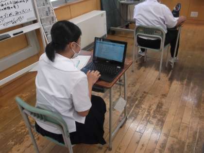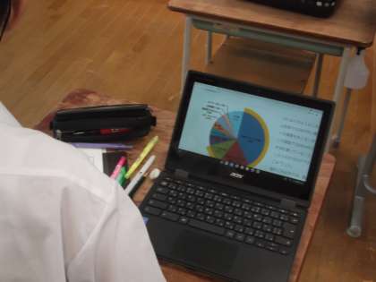 1年5限 「総合的な学習の時間(楡の木タイム)」 公開日 2021/09/08 更新日 2021/09/08 日々の活動から 9月8日(水) 1年生の「総合的な学習の時間(楡の木タイム)」は、タブレットを利用し自分のテーマについて調べ学習を行っています。 早く進めている生徒は、まとめに入っています。