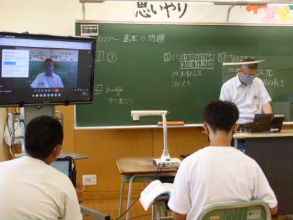 1年3限 数学 公開日 2021/09/09 更新日 2021/09/09 日々の活動から 9月9日(木) 1年生の数学の授業の様子です。 章末問題の答え合わせをオンラインでしてみました。 「ICT支援員」の方の協力を得て、不都合なところや疑問点を確認し、今後オンライン授業になったとしても「できる」という確信がもてました。