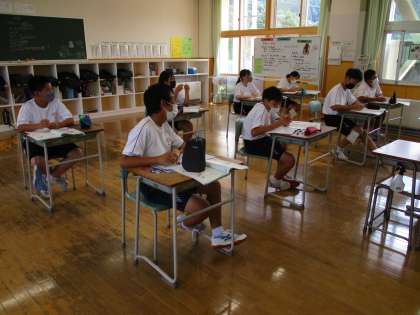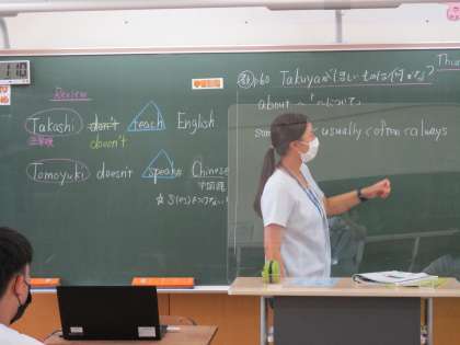 9月9日(木) 1年生の英語の授業の様子です。 三単現の否定文と頻度について復習をして、教科書を進みました。