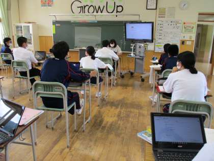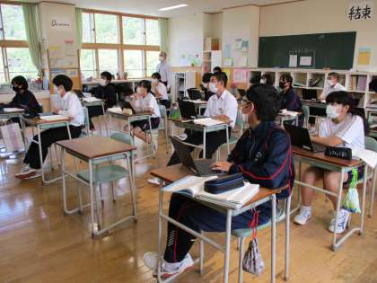9月9日(木) 3年生の国語の授業の様子です。 詩「挨拶」を読んで感想を書き、話し合いました。