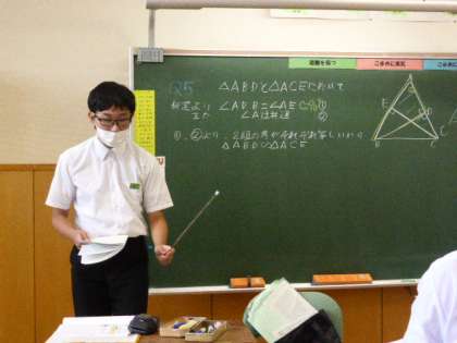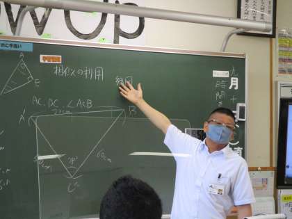 まず、前時に学習した相似条件を使った証明の振り返りをしました。