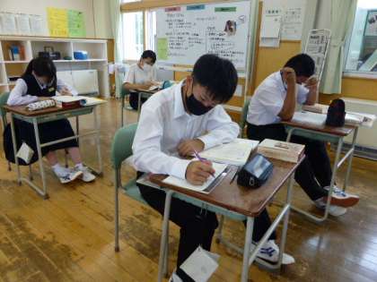 9月14日(火) 1年生の国語の授業の様子です。 ワークを進めていました。