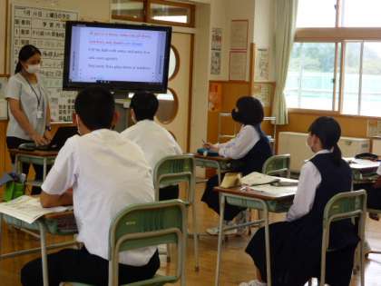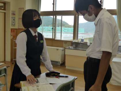 9月14日(火) 3年生の英語の授業の様子です。 ペアになって、英会話の練習をしていました。