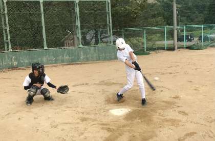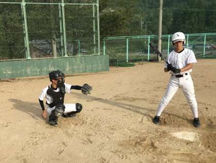捕手は、いい声がけをしながら練習を盛り上げました。