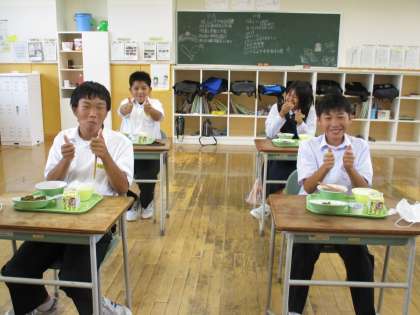 9月15日(水) 1年生の給食風景です。