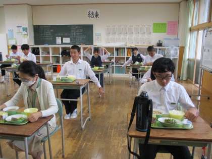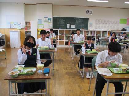 9月15日(水) 3年生の給食風景です。 放送当番の生徒もいました。