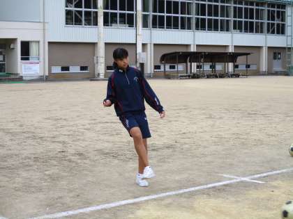 サッカーのいろいろなキックを練習していました。