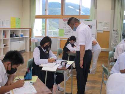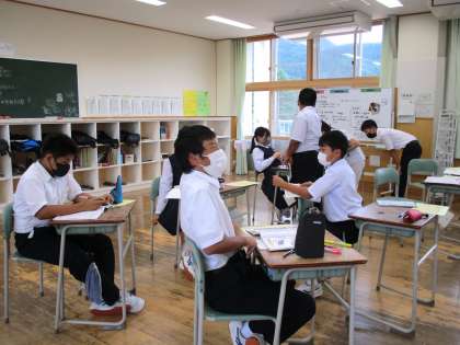 1年5限 数学 公開日 2021/09/15 更新日 2021/09/15 日々の活動から 9月15日(水) 1年生の数学の授業の様子です。 小学校の「反比例」の復習と中学校の「反比例」について学習しました。
