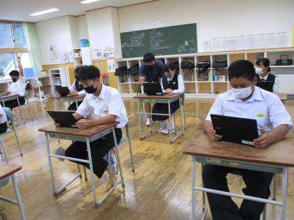 1年 国語検定 公開日 2021/09/15 更新日 2021/09/15 日々の活動から 9月15日(水) 6限終了後、楡中オリジナル「国語検定」を初めてタブレットを使用して実施しました。 「以心伝心」はどんな意味ですか?というような問題もありました。