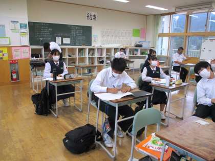 3年 国語検定 公開日 2021/09/15 更新日 2021/09/15 日々の活動から 9月15日(水) 3年生は撮影に行った頃には、国語検定を終えて帰りの会の準備をしていました。 さすが3年生、あっという間に問題を解き終えたようです。