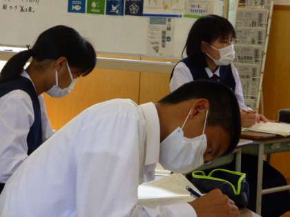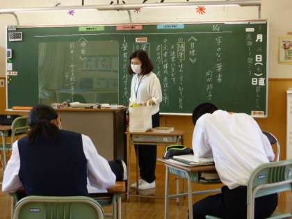 9月16日(木) 2年生の国語の授業の様子です。 「字のない葉書」という新しい文章を読んで学習しました。