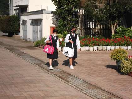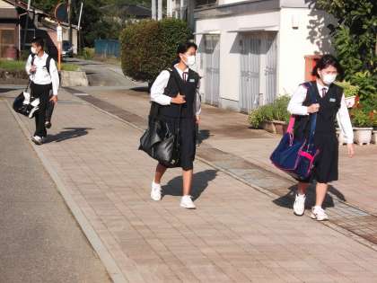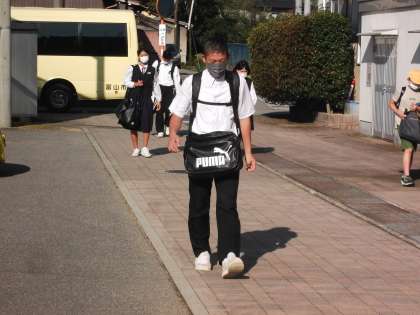 9月16日(木) 今朝は、爽やかな風が吹く中、雲一つない青空の下、本校生徒は元気に登校してきました。