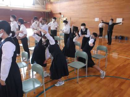 文化芸術による子ども育成総合事業 公開日 2021/09/16 更新日 2021/09/16 日々の活動から 画像上段と中段は、漫才発祥の「萬歳流し」という演目の様子です。 画像下段は、「ドレミの歌」に合わせて、ボディパーカションをして、最後に自由なポーズを取っているところです。