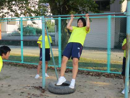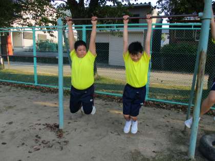 9月16日(木) 今日のボート部の活動の様子です。 鉄棒を使って体幹トレーニングを行いました。