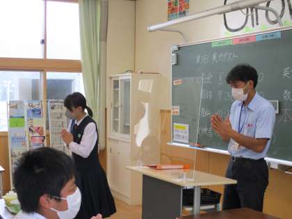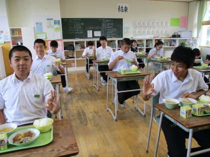 9月17日(金) 3年生の給食風景です。 3年生だけは給食を食べました。