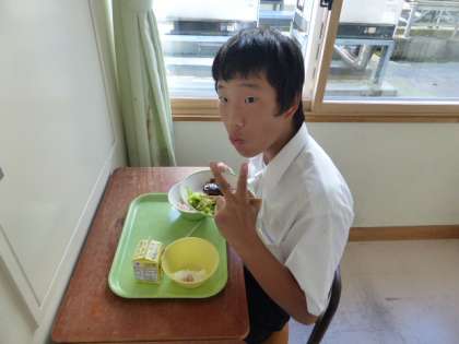 9月21日(火) 1年生の給食風景です。 放送当番の生徒もいました。