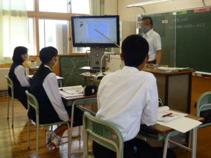 2年5限 数学 公開日 2021/09/21 更新日 2021/09/21 日々の活動から 9月21日(火) 2年生の数学の授業の様子です。 1次関数の利用について学習しました。 グラフがぶつかるところは何を意味するのか・・・ 長方形の周上を点が動くことによって三角形ができる。 その三角形の面積を表す式はどうなるでしょう? 等です。