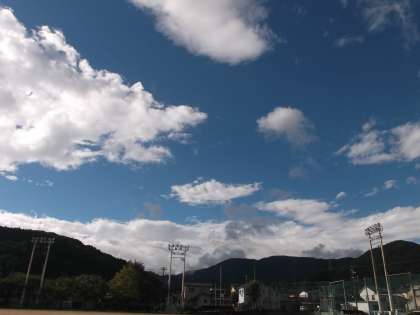 9月22日(水) 今朝の空は、風の影響で雲の流れが速く、青空が次々に隠れたり、顔を出したりしていました。