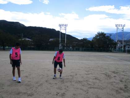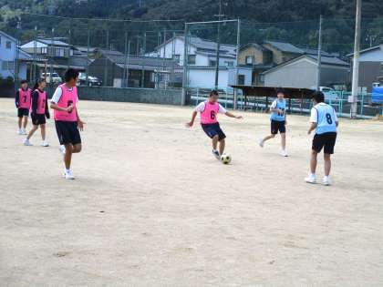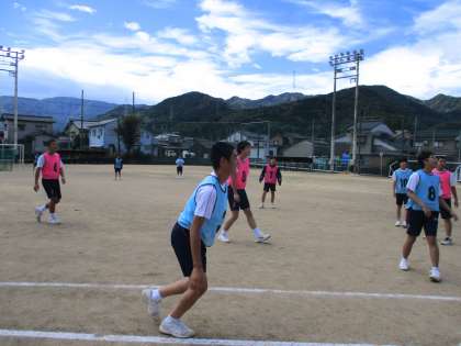 3年3限 保健体育 公開日 2021/09/22 更新日 2021/09/22 日々の活動から 9月22日(水) 3年生の保健体育の授業の様子です。 パスやシュート練習をした後で楽しそうにミニゲームをしました。