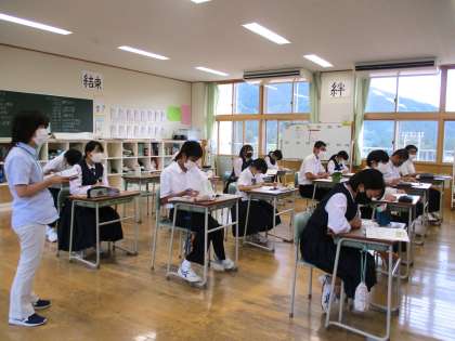 9月22日(水) 3年生の数学の授業の様子です。 中点連結定理を学びました。