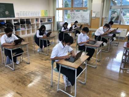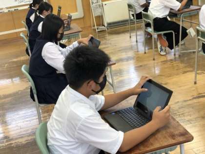 基本的な漢字や四字熟語の意味等をタブレットを用いて解答しました。