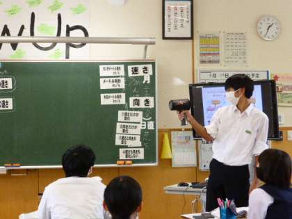 3年5限 理科 公開日 2021/09/24 更新日 2021/09/24 日々の活動から 9月24日(金) 理科の授業の様子です。 生徒がバドミントンのシャトルを投げて、スピードガンで速さを測定していました。