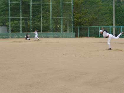 キャッチボールを丁寧に行った後、実践練習に取り組みました。