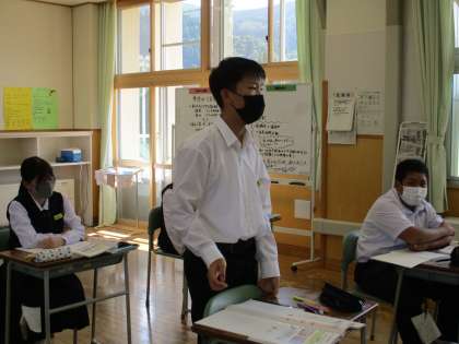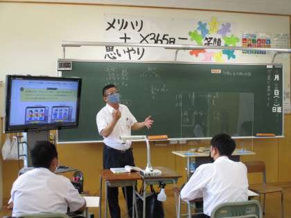 1年3限 数学 公開日 2021/09/25 更新日 2021/09/25 日々の活動から 9月24日(土) 1年生の数学の授業の様子です。 比例と反比例の利用について学びました。 Q:「比例の考えが実際の生活で使われていますか?」 A:「1日に牛乳を500mL飲むので、2日で1本なくなるから、2日に1回牛乳を買います。」