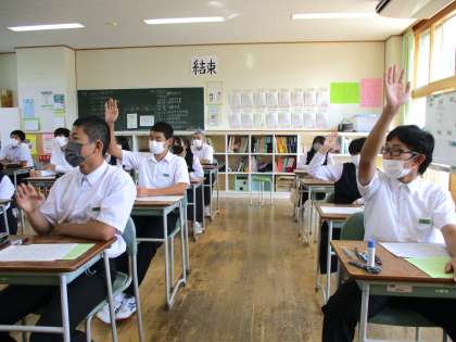 統一学校公開日 3年 授業参観 公開日 2021/09/25 更新日 2021/09/25 日々の活動から 3年生の数学の授業の様子です。 「相似な図形の相似比と面積比にどんな関係があるだろう」が学習課題でした。 自分の言葉で説明しています。