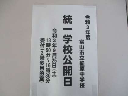 統一学校公開日 開会式 公開日 2021/09/25 更新日 2021/09/25 日々の活動から 9月25日(土) 本日、午後から市統一学校公開日を行いました。 多目的室にて、鍋田校長から挨拶をし、その後授業参観を行いました。