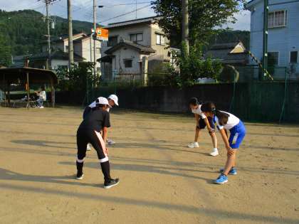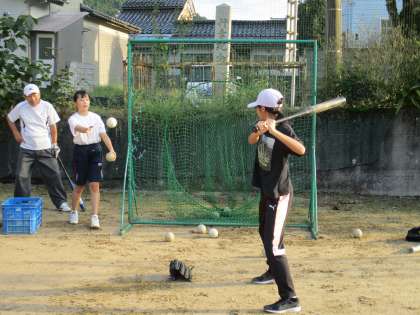 ソフトボール部の体験には、3名の小学生が体験・見学に来てくれました。最初にランニングや準備体操をしてから、キャッチボールや素振り、網打ち等の体験を行いました。ボールの投げ方やバットの持ち方を、中学生が小学生に丁寧に教えていました。いつもより活気のある雰囲気で活動をすることができました。