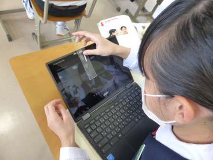 3年3限 美術 公開日 2021/09/28 更新日 2021/09/28 日々の活動から 9月28日(火) 3年生の美術の授業の様子です。 自画像をかいています。 画面の自分の写真に線を引いて、分割割合を計算したり、画用紙に平行線を引いて大きさのめどをつけたりと工夫していました。