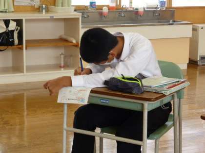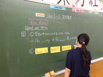 9月28日(火) 2年生の英語の授業の様子です。 「must」「have to」などの復習をしていました。