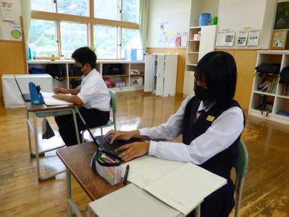 1年1限 「総合的な学習の時間(楡の木タイム)」 公開日 2021/09/29 更新日 2021/09/29 日々の活動から 9月29日(水) 1年生の「総合的な学習の時間(楡の木タイム)」の様子です。 SDGsの個人課題について調べ学習をしました。