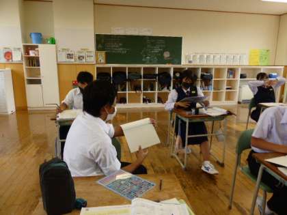 1年3限 技術 公開日 2021/09/29 更新日 2021/09/29 日々の活動から 9月29日(水) 1年生の技術の授業の様子です。 製図の練習として、さいころを立体的に書く方法を学習しました。
