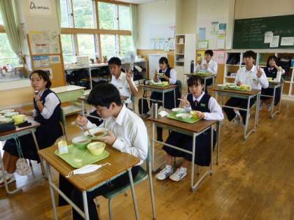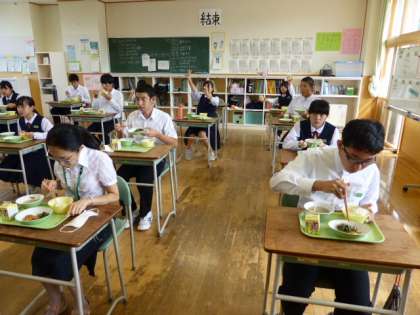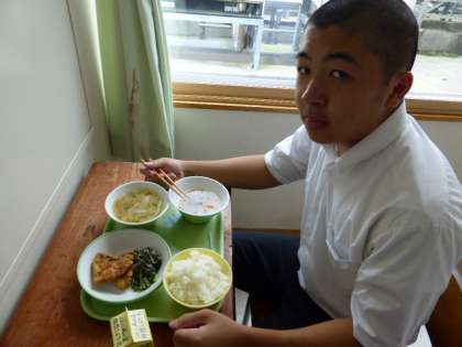 9月29日(水) 3年生の給食風景です。 放送当番の生徒もいました。