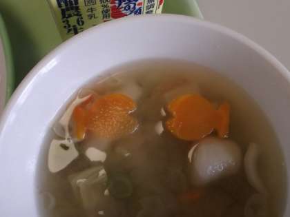 今日の「つみれ汁」の中には、型抜きされた小魚型の《にんじん》が入っていました。