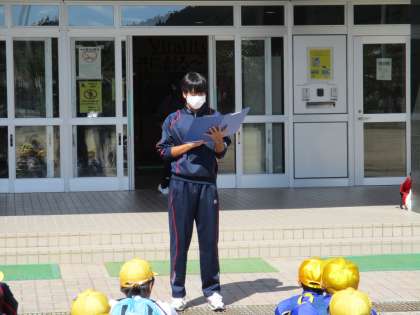 小中合同天湖森ボランティア清掃 公開日 2021/09/29 更新日 2021/09/29 日々の活動から 9月29日(水) 本日午後から「小中合同天湖森ボランティア清掃」を行いました。 生徒玄関前で出発式を行いました。