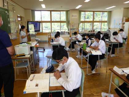 9月30日(木) 3年生の英語の授業の様子です。 地震が起きたときの様子の英文を読んでいました。