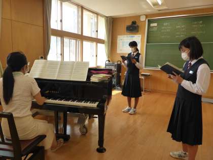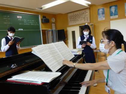 9月30日(木) 2年生の音楽の授業の様子です。 学習発表会で歌う合唱のパート練習をしました。