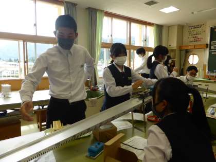 9月30日(木) 3年生の理科の授業の様子です。 「だんだん速くなる運動」について実験しました。