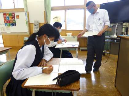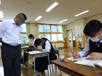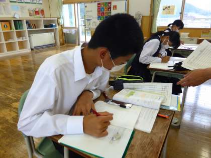 2年1限 数学 公開日 2021/10/01 更新日 2021/10/01 日々の活動から 10月1日(金) 2年生の数学の授業の様子です。 「多角形の内角の和」を求めるにはどうすればよいのか学習しました。