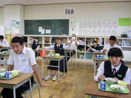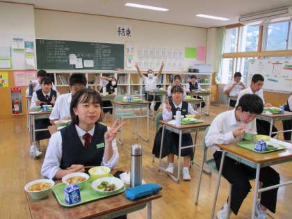 10月1日(金) 3年生の給食風景です。 放送当番の生徒もいました。
