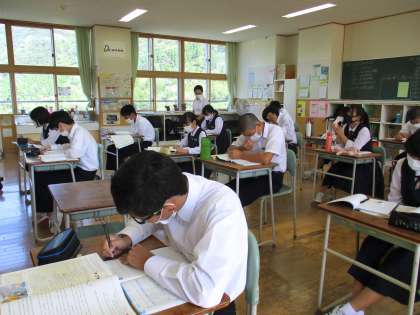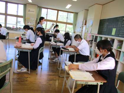 3年3限 英語 公開日 2021/10/04 更新日 2021/10/04 日々の活動から 10月4日(月) 3年生の英語の授業の様子です。 「The man singing a song is Mr.S」 を別の後置修飾ではどんな表現方法があるか?という内容を学習していました。