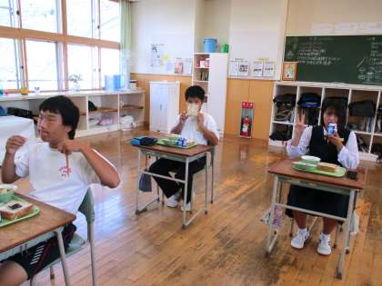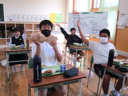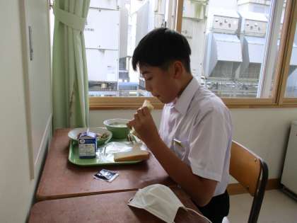 10月4日(月) 1年生の給食風景です。 放送当番の生徒もいました。