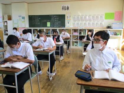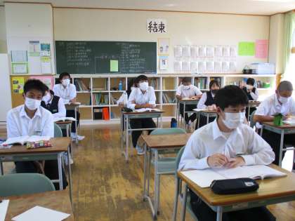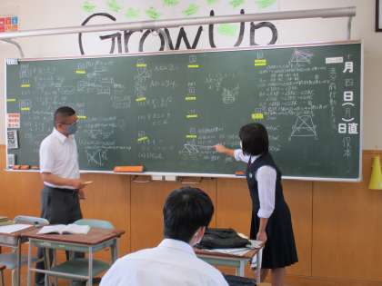 10月4日(月) 3年生の数学の授業の様子です。 章末問題で、自分の考えを前に出て説明しています。