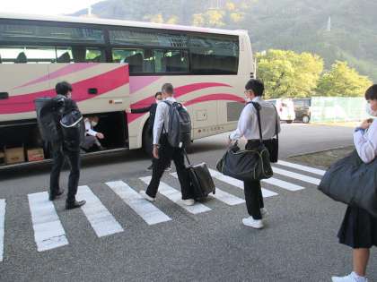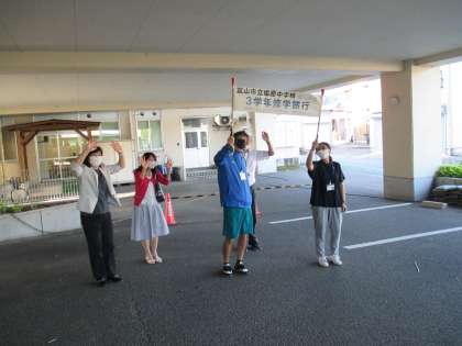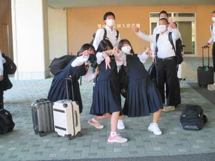 3年 修学旅行 1日目 公開日 2021/10/05 更新日 2021/10/05 日々の活動から 見送りの横断幕?もありました。 出発前から楽しいポーズを取ってくれました。 荷物をトランクに入れます。