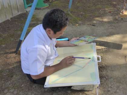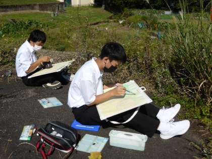 思い思いの場所で写生をしていました。