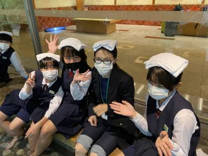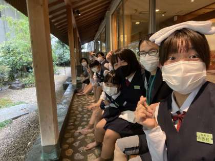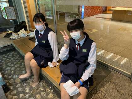 部屋点検を終え、足湯に入っています。